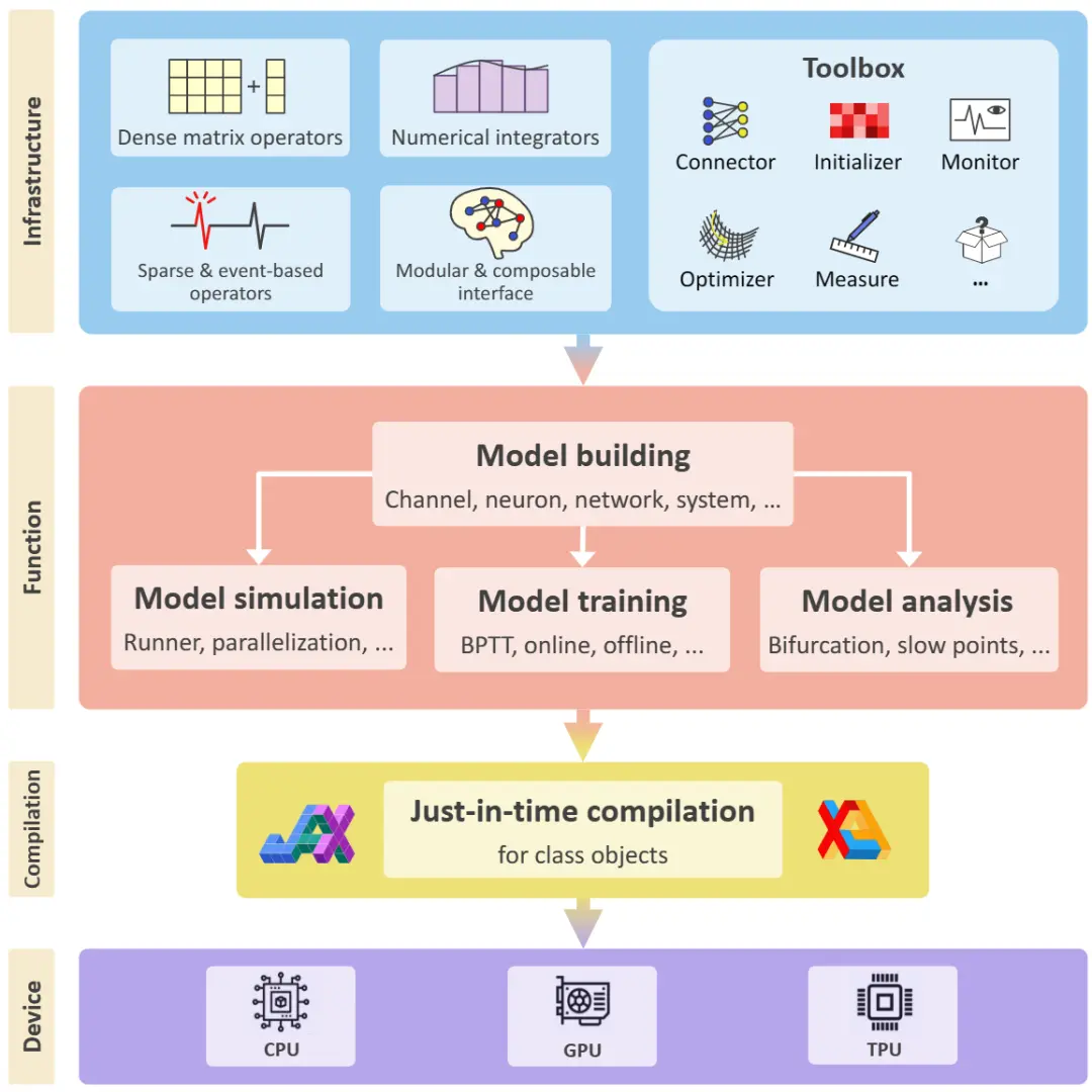 本书不仅详细介绍了不同层次的理论模型,还为每个模型配套了相应的代码实现。所有代码使用原创的BrainPy编程框架实现。